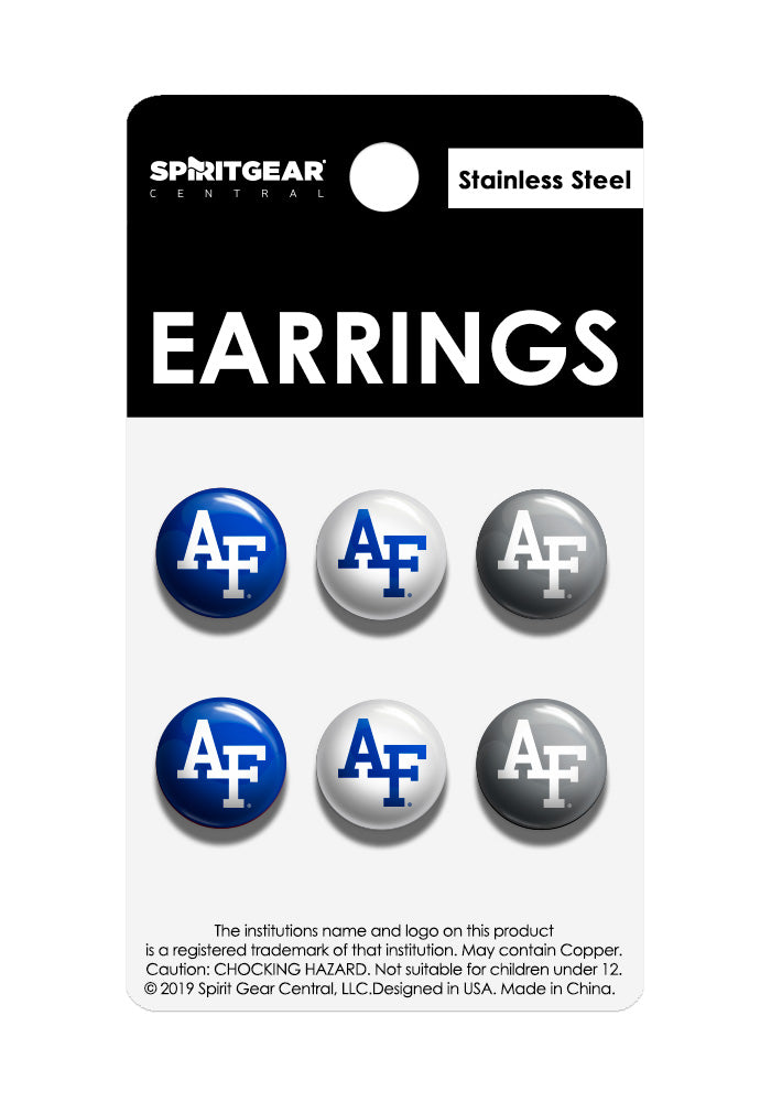 These Air Force Falcons Stud Earrings are small, light weight and comfortable. They come 3 pair per pack and measure approximately 0.25 in in diameter. Air Force Falcons Stud Earrings are great jewelry accessories for games, graduations, events and more. FEATURES: Air Force Falcons logo. Silver finish. 3 pairs per pack. Comfortable. Non-irritating and hypoallergenic. Great for football games, softabll games, basketball games, baseball games or any other event. Officially Licensed. Spirit Gear Central.